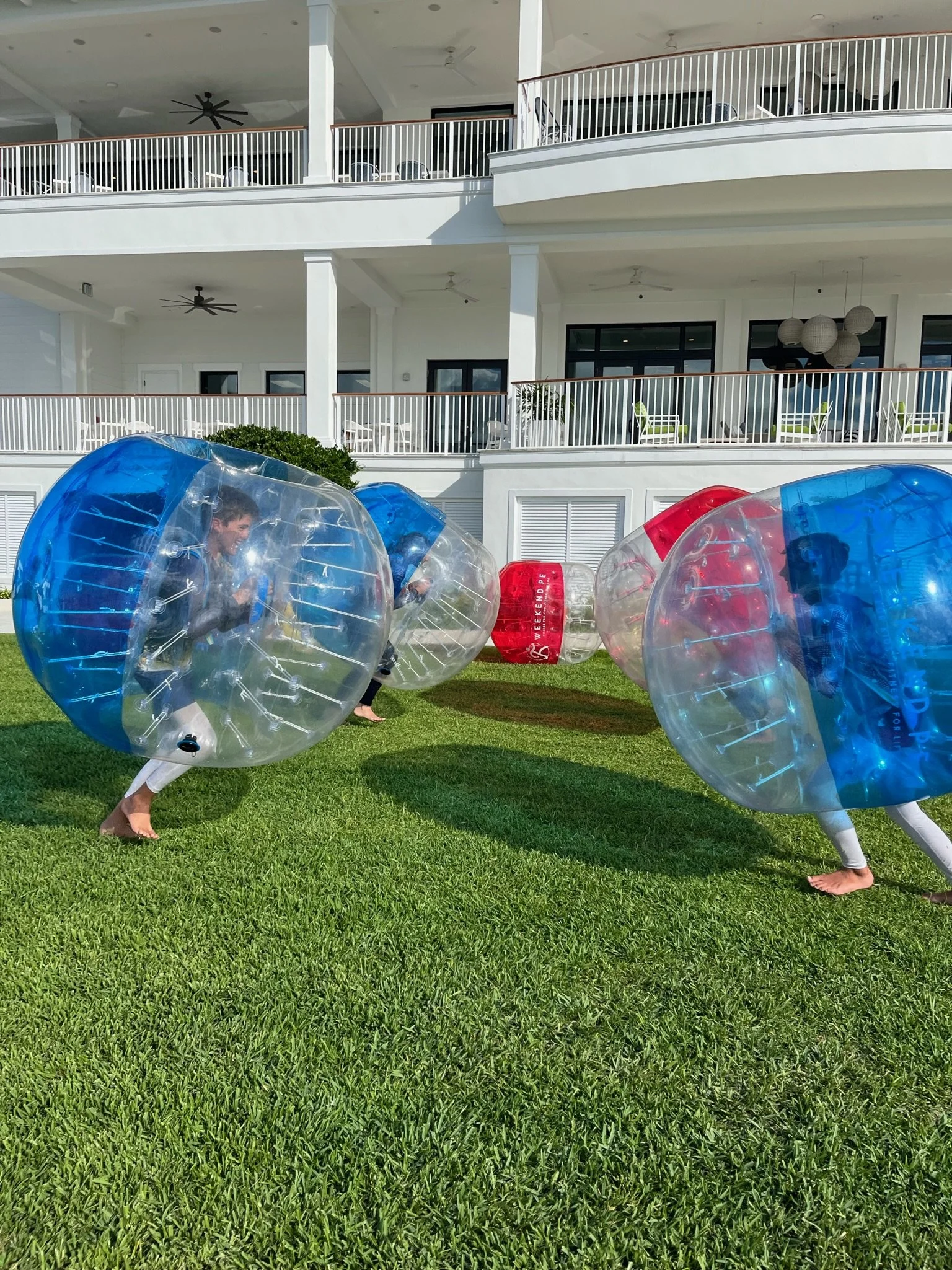 The fun never stops as kids bounce, roll, and compete! Coaches lead an array of Bubble Ball and Sports Games.